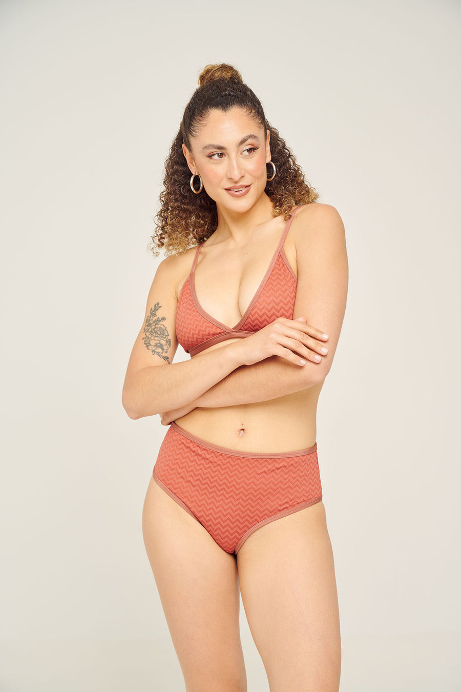 Bombacha ancha en los costados, de tiro bastante alto. Es la bombabha que más tapa la cola.